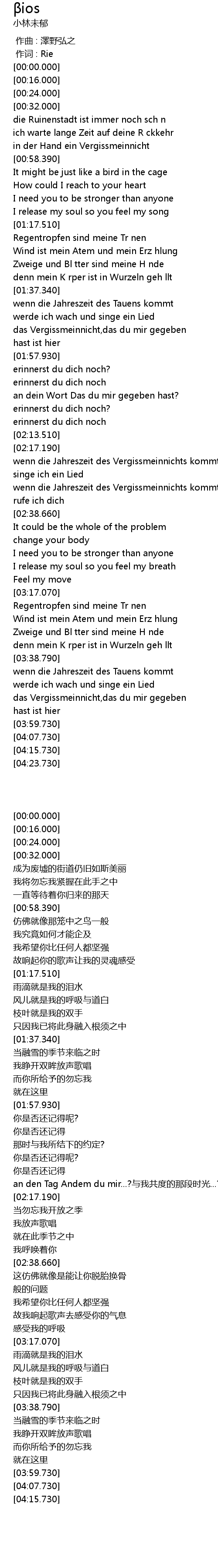 | [03:30.000] | Zweige und Bl tter sind meine H nde |