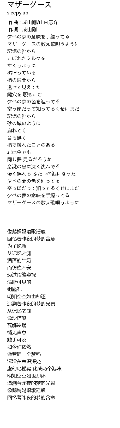 | [00:12.69] | マザーグースの数え歌唄うように |