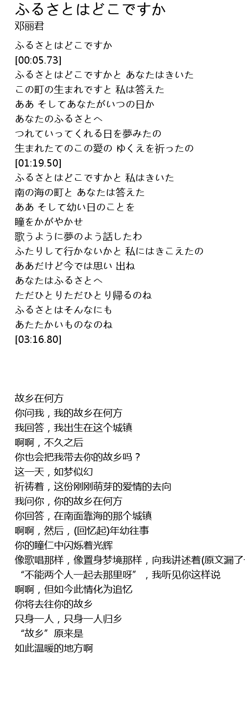 | [00:22.06] | ふるさとはどこですかと あなたはきいた |