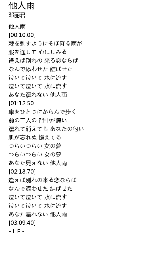 | [03:02.10] | あなた濡れない 他人雨 |