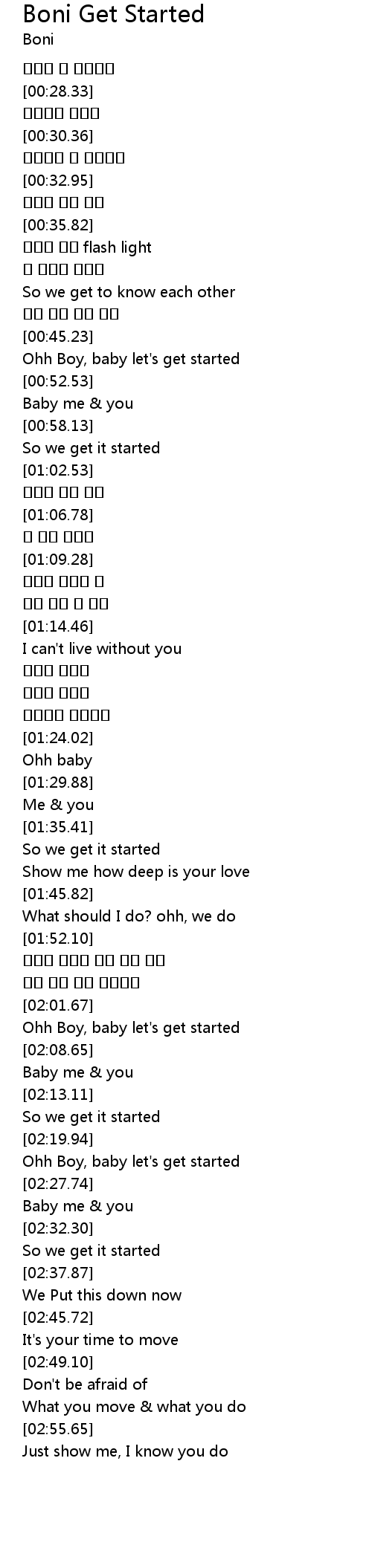 | [00:47.97] | Ohh Boy, baby let's get started |