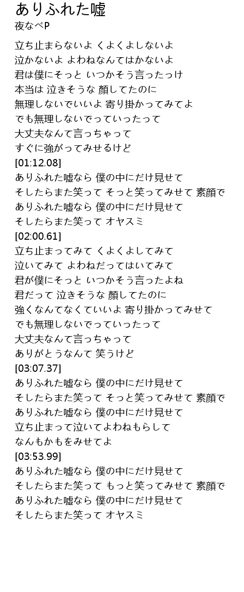 | [03:54.20] | ありふれた嘘なら 僕の中にだけ見せて |