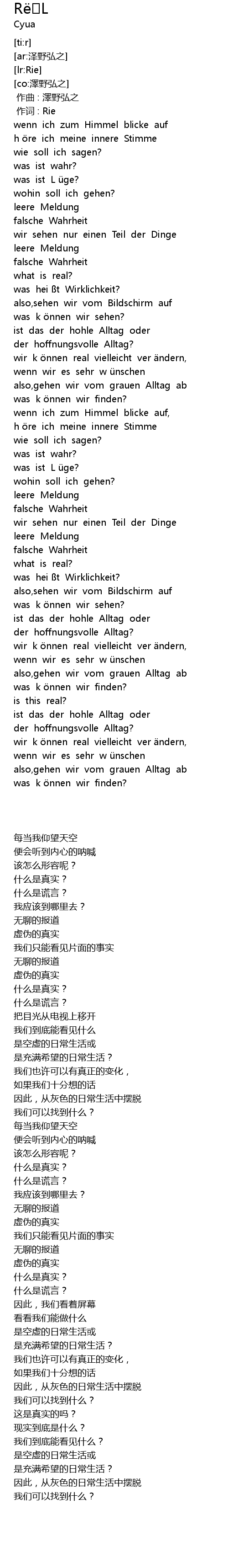 | [00:57.83] | was hei ßt Wirklichkeit? |