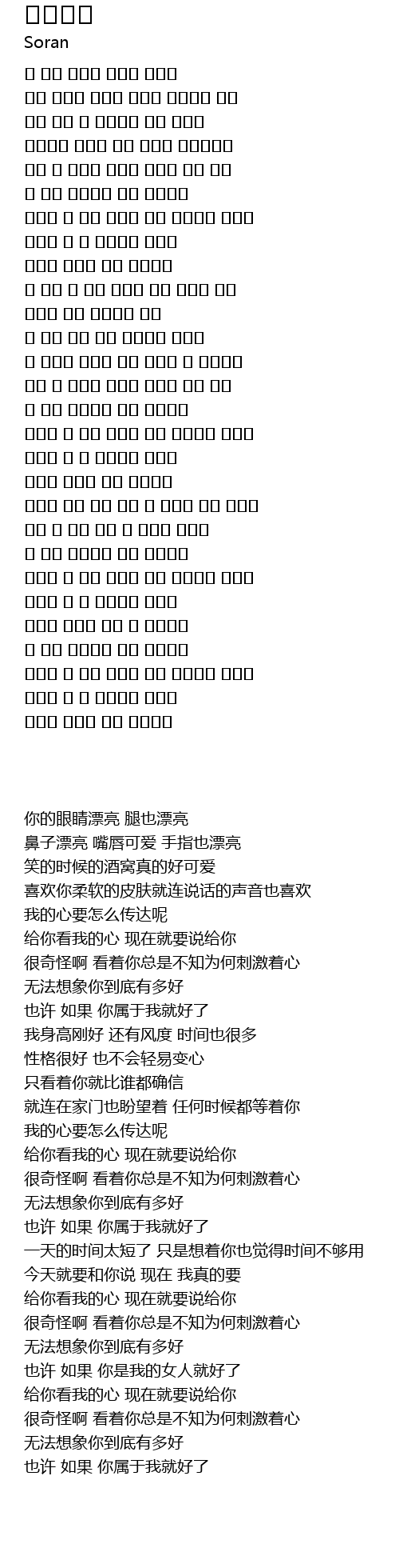 | [00:09.15] | 鼻子漂亮 嘴唇可爱 手指也漂亮 |