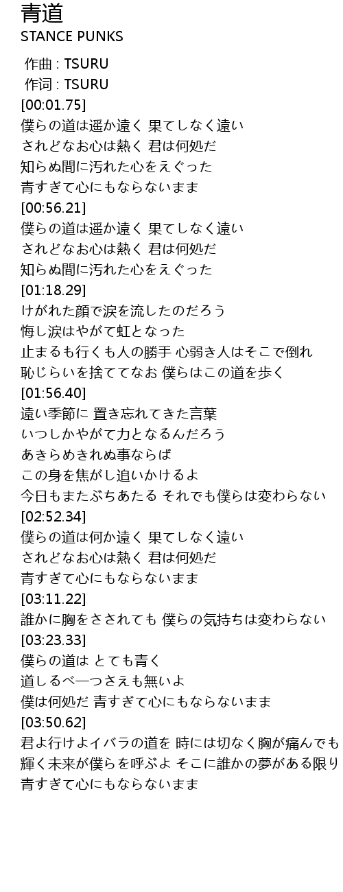 | [00:56.31] | 僕らの道は遥か遠く 果てしなく遠い |