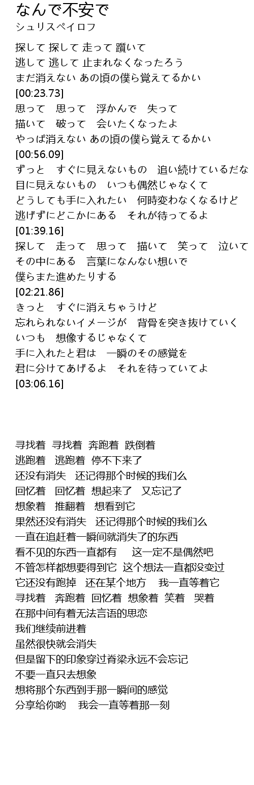 | [00:03.14] | 探して 探して 走って 躓いて |