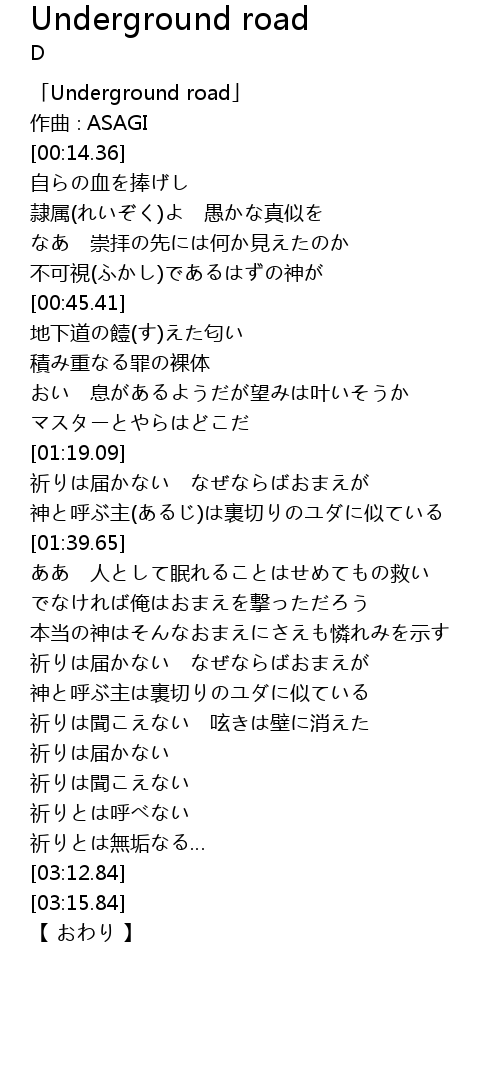 | [00:52.71] | 地下道の饐(す)えた匂い |
