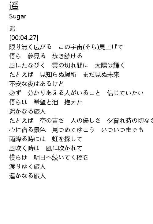 | [00:38.25] | たとえば 見知らぬ場所 まだ見ぬ未来 |