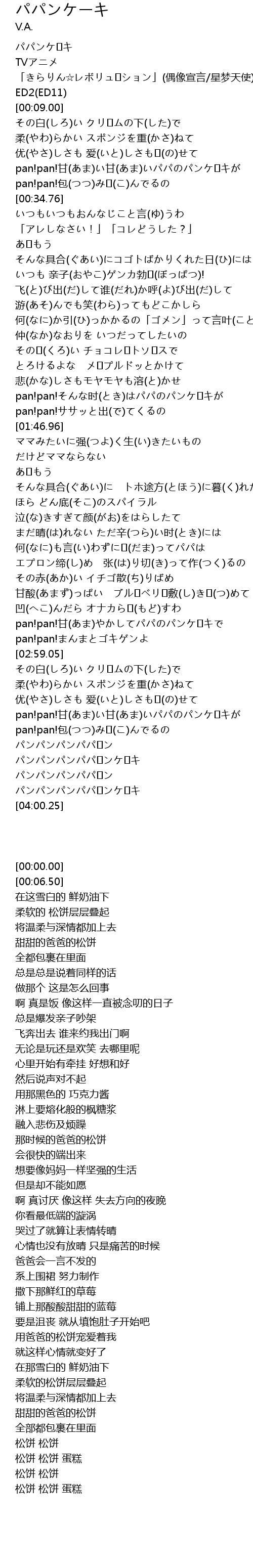| [03:54.29] | パンパンパンパパ�ンケ�キ |