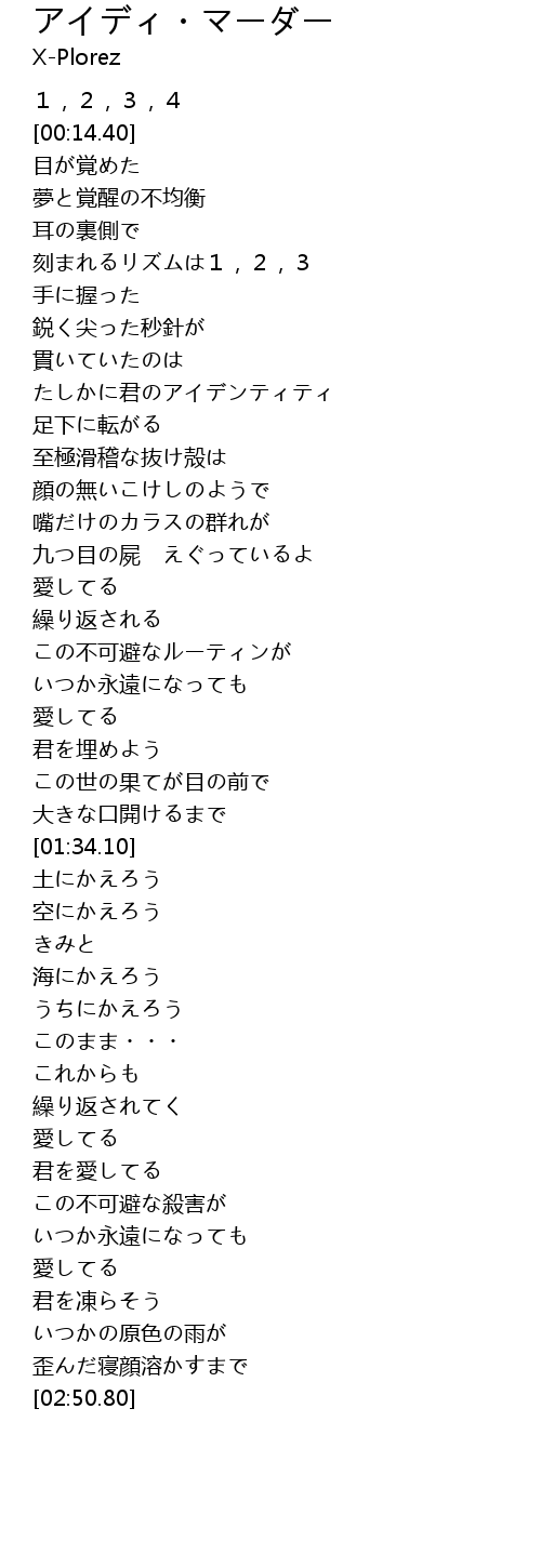| [01:00.80] | 九つ目の屍 えぐっているよ |