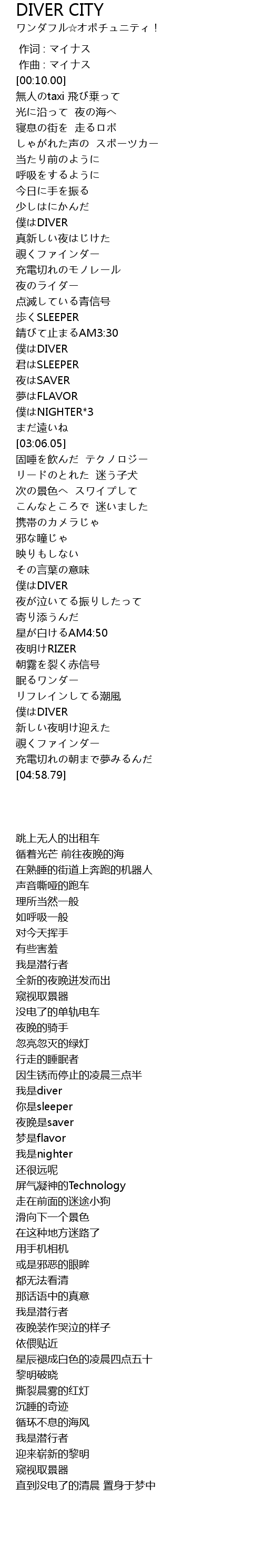 作词 : マイナス |