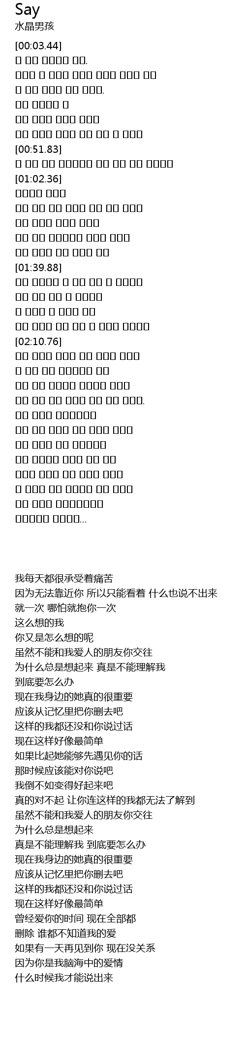 | [02:54.00] | 지금 나의 곁에 그녀도 정말 많이 소중해. |