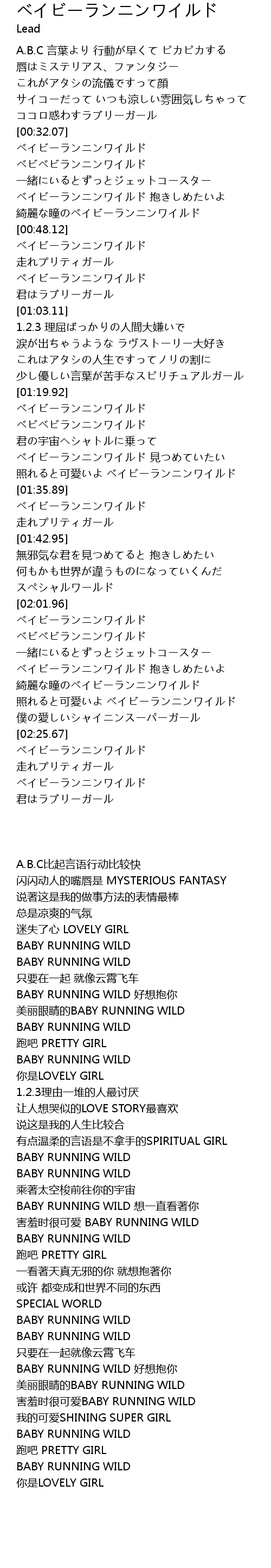 | [00:32.62] | ベイビーランニンワイルド |