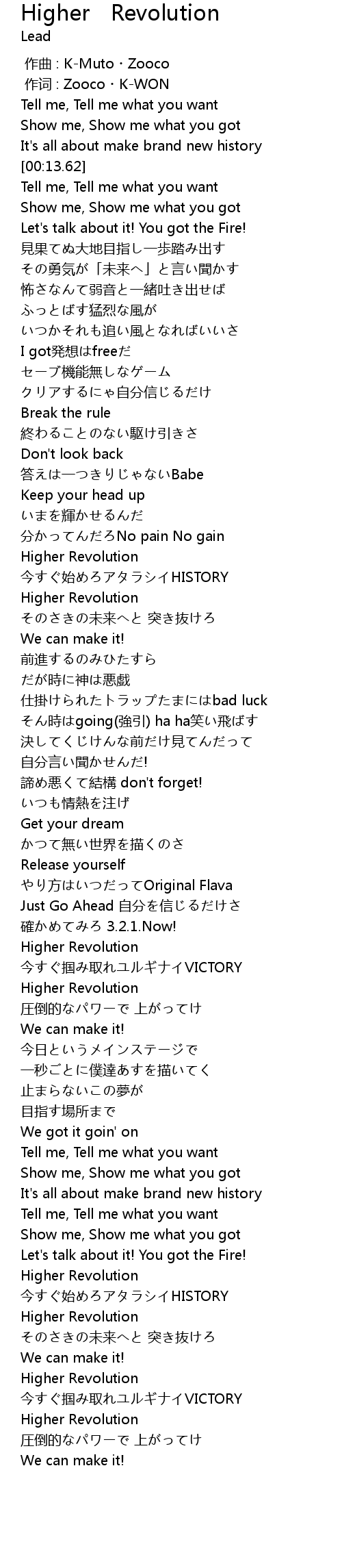 | [01:12.34] | Higher Revolution |