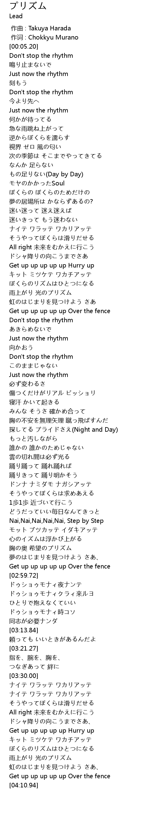 | [04:01.31] | 雨上がり 光のプリズム |