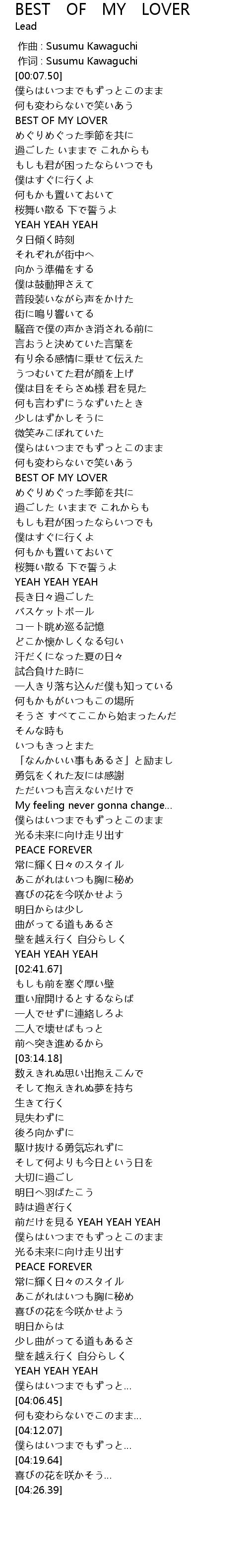 | [00:01.00] | zuò cí : Susumu Kawaguchi |