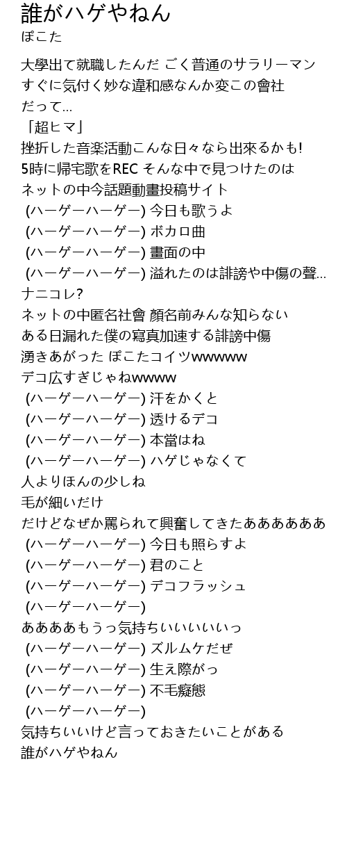 | [01:21.12] | (ハーゲーハーゲー) ボカロ曲 |