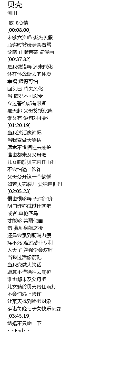| [03:21.46] | 儿女躺於贝壳内任雨打 |