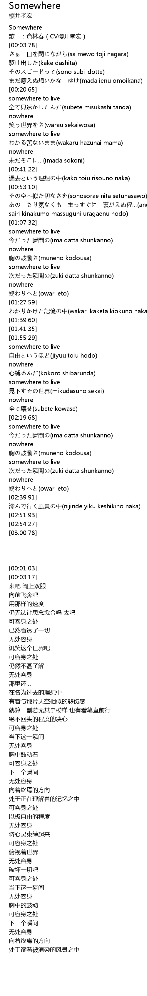 | [00:01.03] | Somewhere |