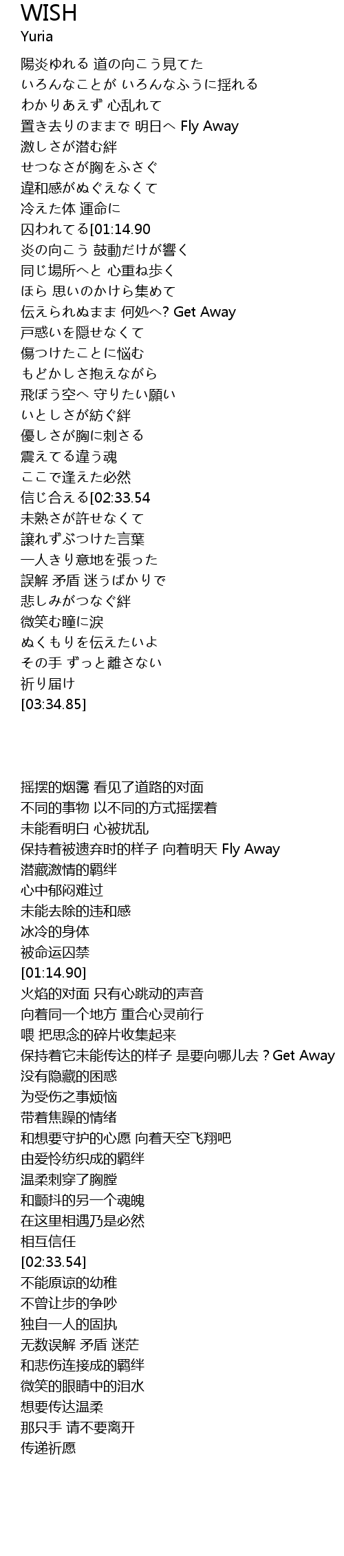 | [00:45.07] | 保持着被遗弃时的样子 向着明天 Fly Away |