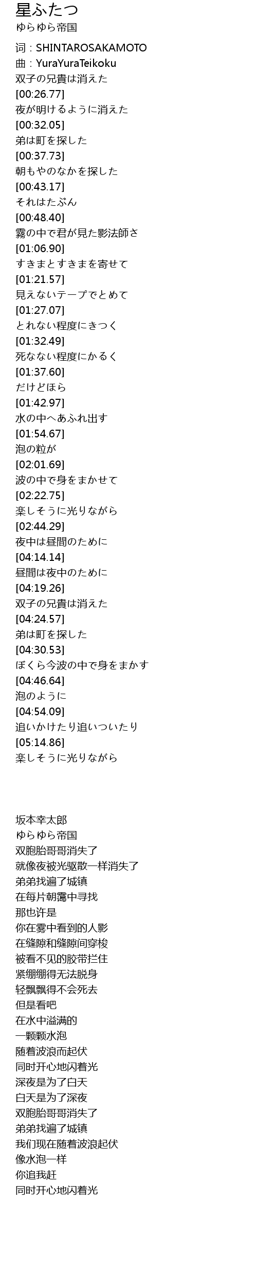 | [04:21.40] | 双子の兄貴は消えた |
