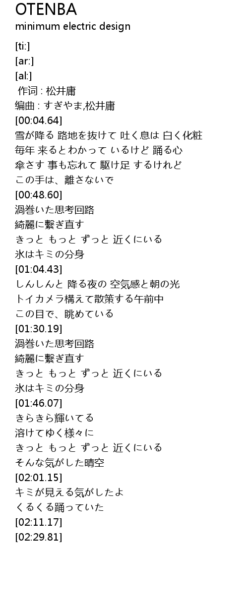 | [01:38.52] | きっと もっと ずっと 近くにいる |