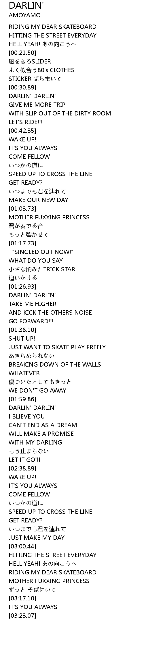 | [02:18.67] | DARLIN' DARLIN' |