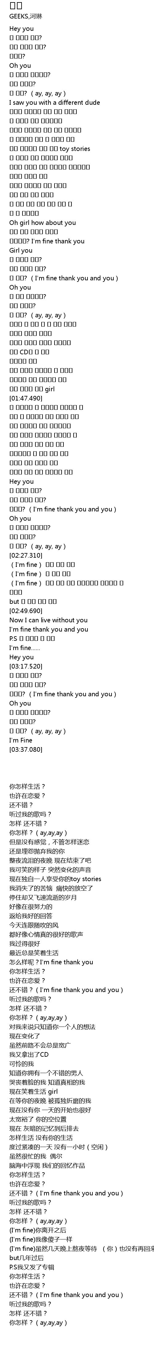 | [03:23.020] | 괜찮니? (I'm fine thank you and you) |