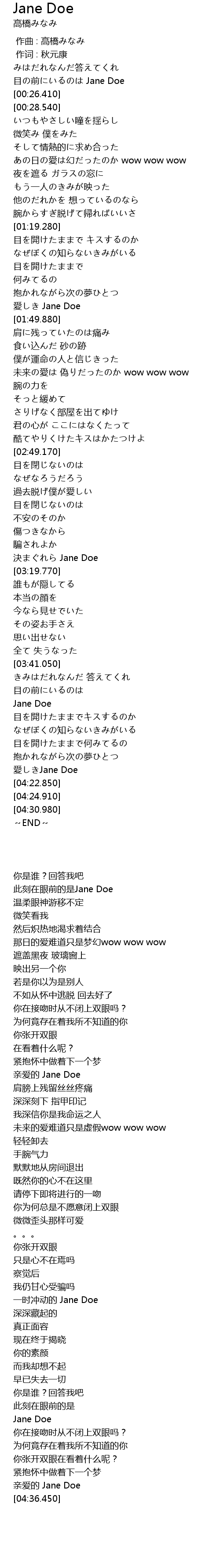 | [00:09.880] | 此刻在眼前的是Jane Doe |