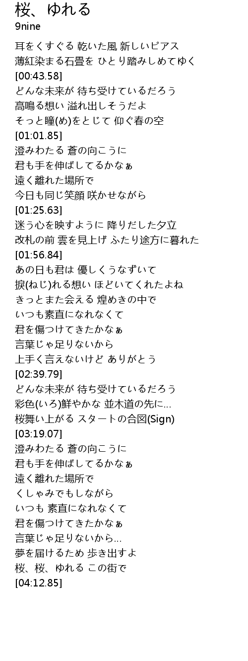| [04:04.45] | 桜、桜、ゆれる この街で |