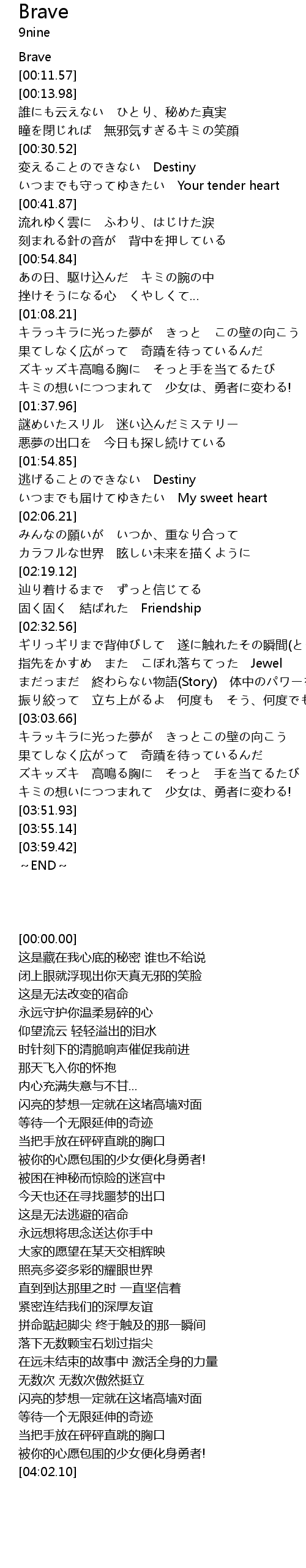 | [03:42.51] | キミの想いにつつまれて 少女は、勇者に変わる! |