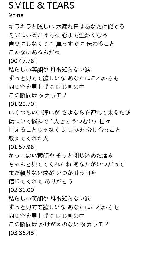 | [02:57.65] | 私らしい笑顔や 誰も知らない涙 |