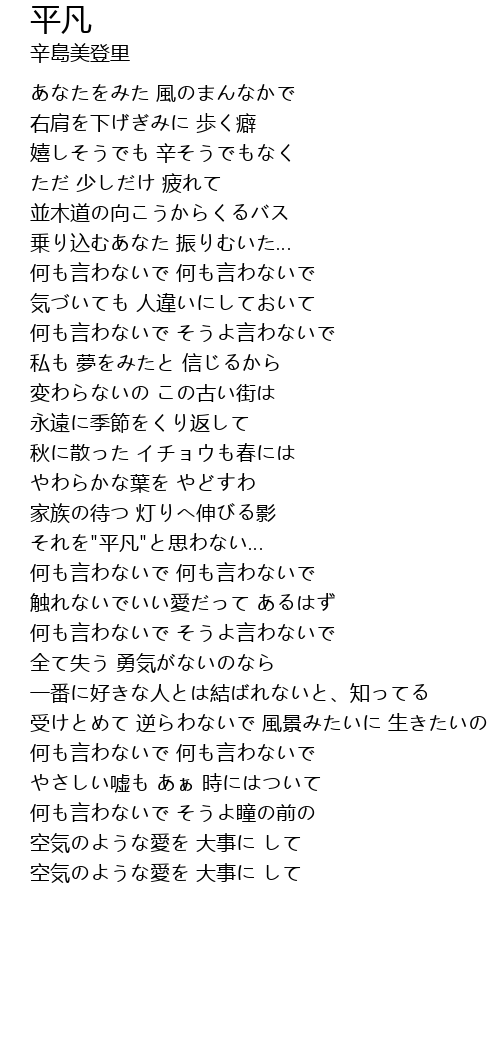 | 受けとめて 逆らわないで 風景みたいに 生きたいの | |