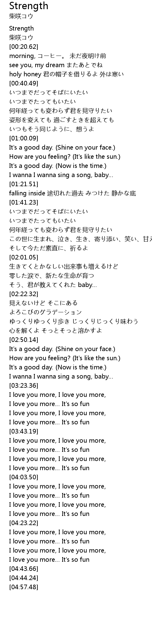 | [04:19.21] | I love you more It' s so fun |