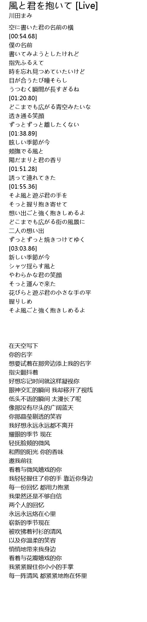 | [03:29.81] | そよ風ごと強く抱きしめるよ |