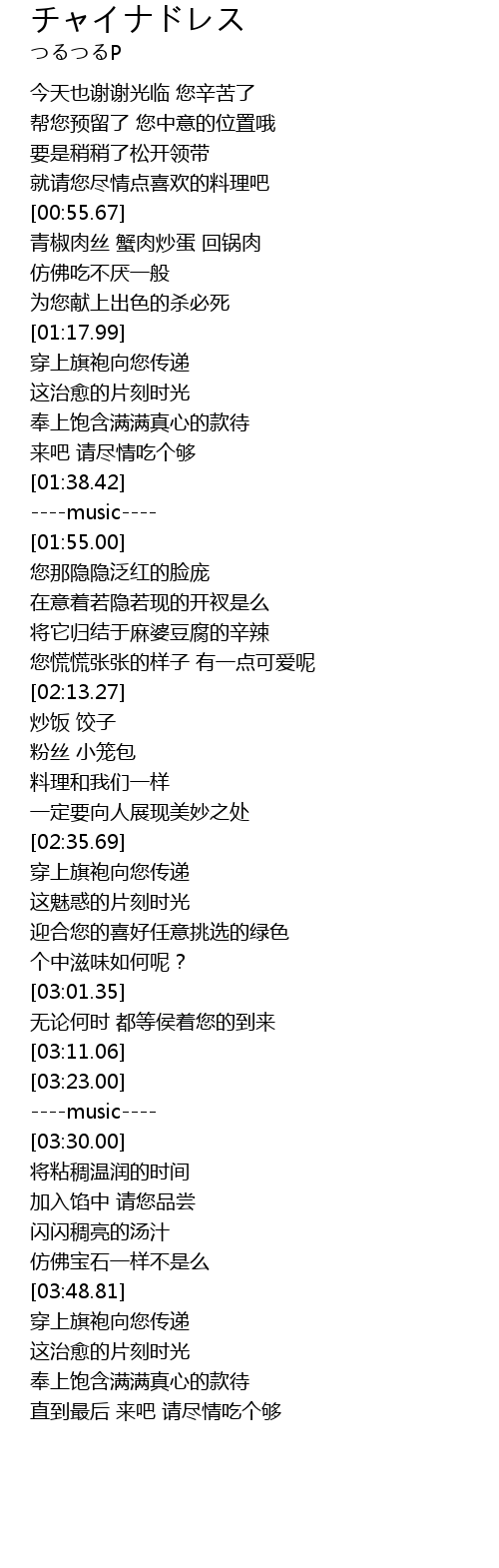 | [03:58.48] | 奉上饱含满满真心的款待 |