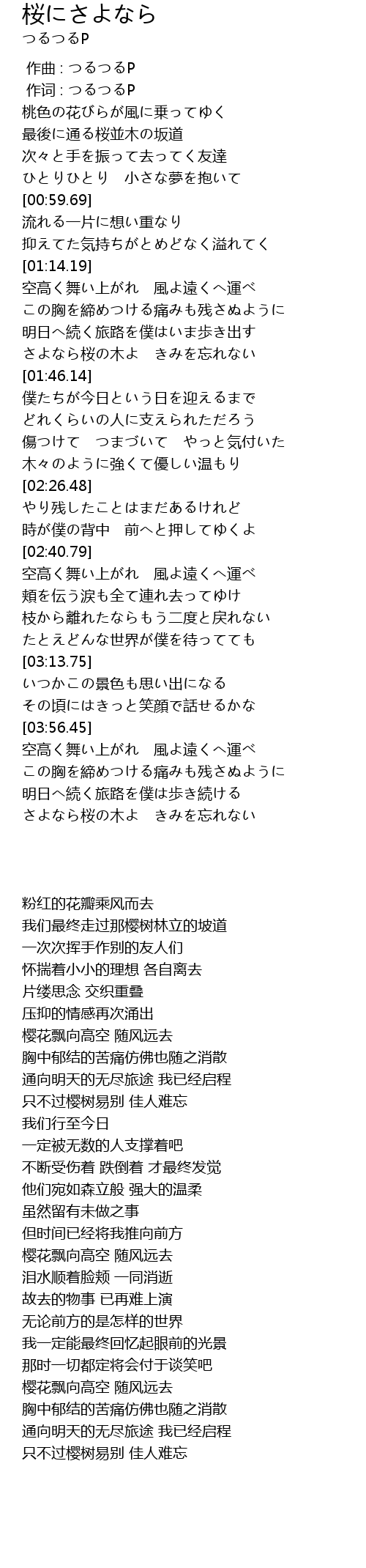 | [04:18.71] | さよなら桜の木よ きみを忘れない |