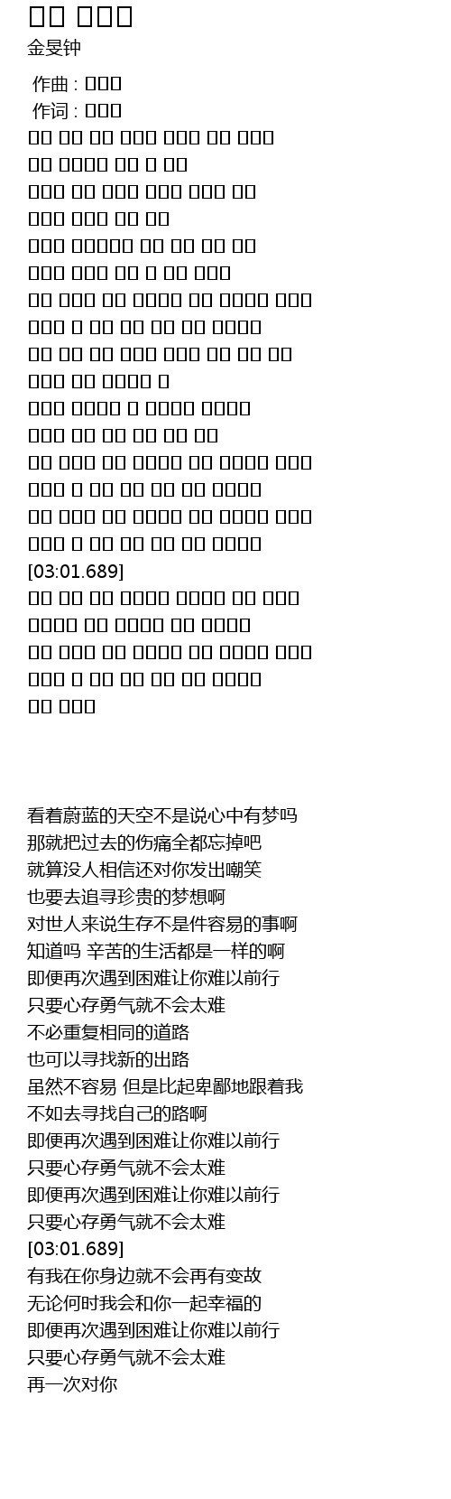 | [03:45.352] | 용기를 내 이겨 낼수 있어 너무 어려워마 |