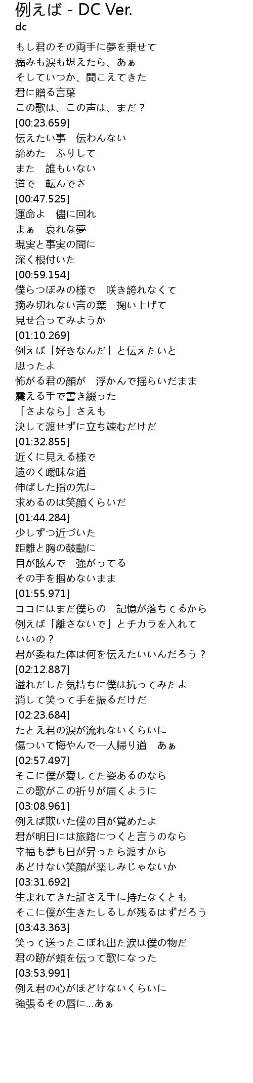 | [02:01.789] | 例えば「離さないで」とチカラを入れて |
