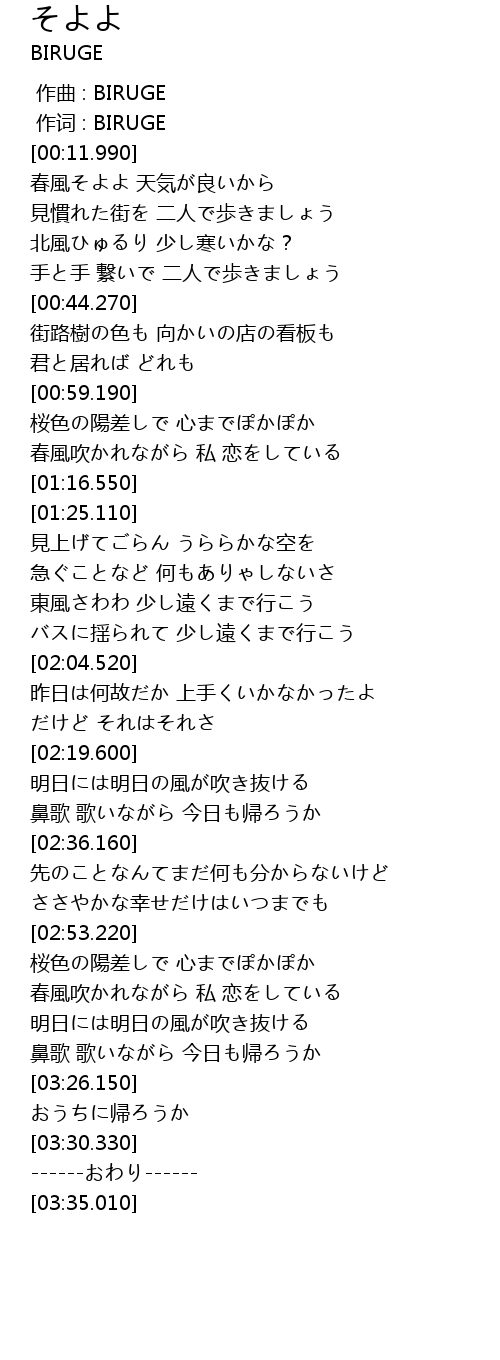 | [00:12.890] | 春風そよよ 天気が良いから |