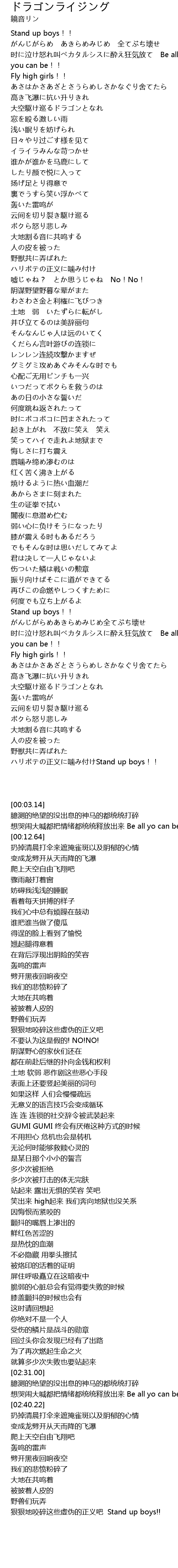 | [03:03.37] | ハリボテの正义に噛み付けStand up boys!! |