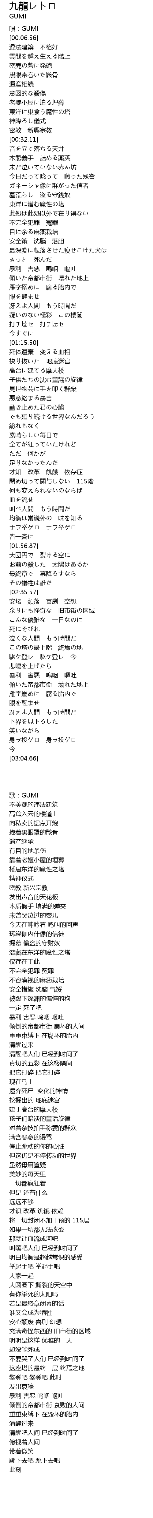 | 歌曲 | 九龍レトロ |