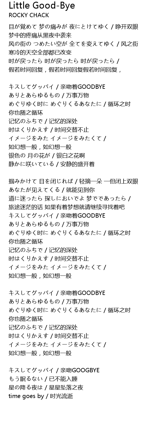 | 目が覚めて 梦の痛みが 夜にとけてゆく / 睁开双眼 梦中的疼痛从黑夜中袭来 | |