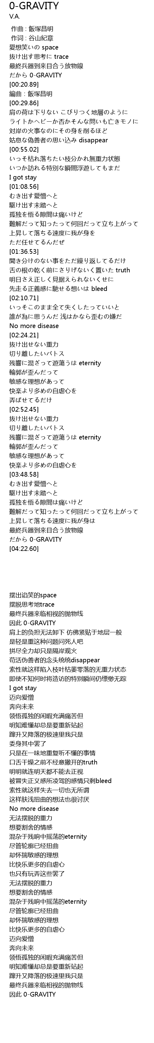 | [04:18.09] | 因此 0-GRAVITY |