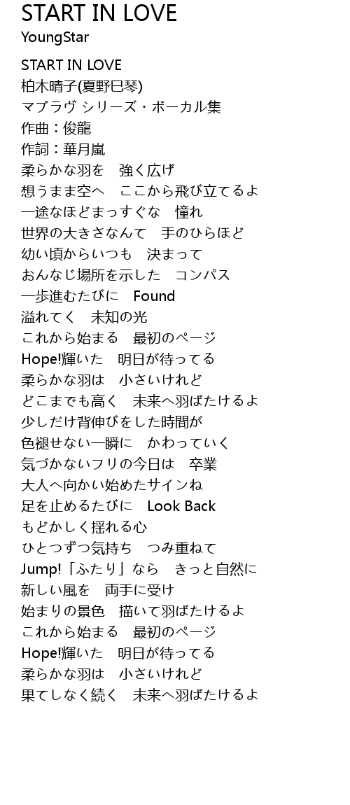 | [00:01.36] | START IN LOVE |