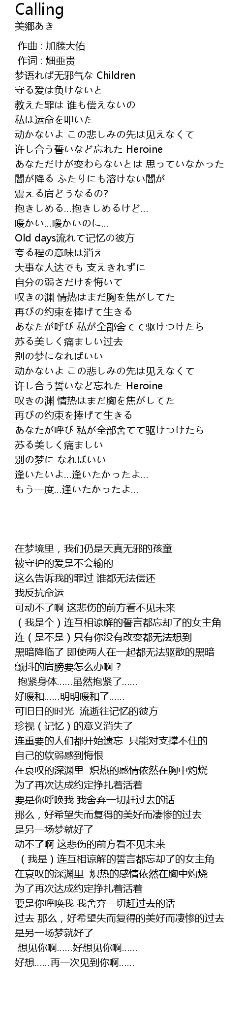 | 歌曲 | Calling |