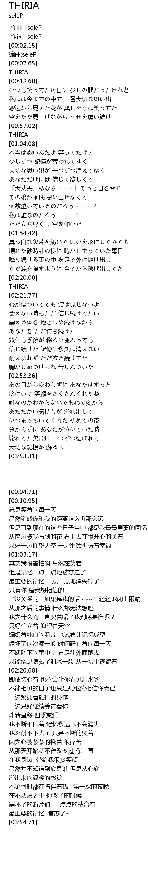 | [01:26.58] | 我为什么而一直哭着呢?我到底是谁呢? |