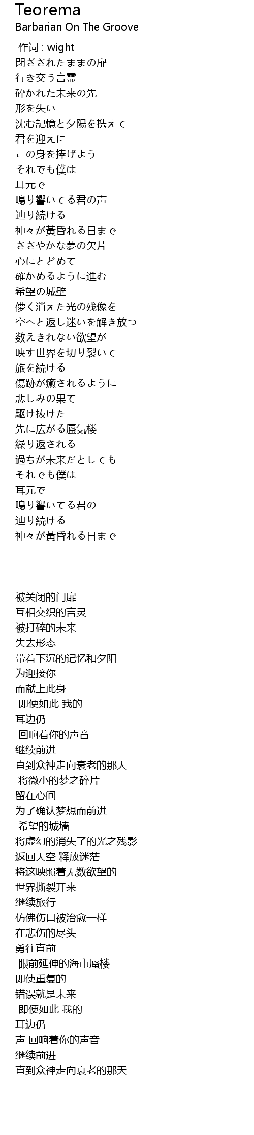 | 歌曲 | Teorema |