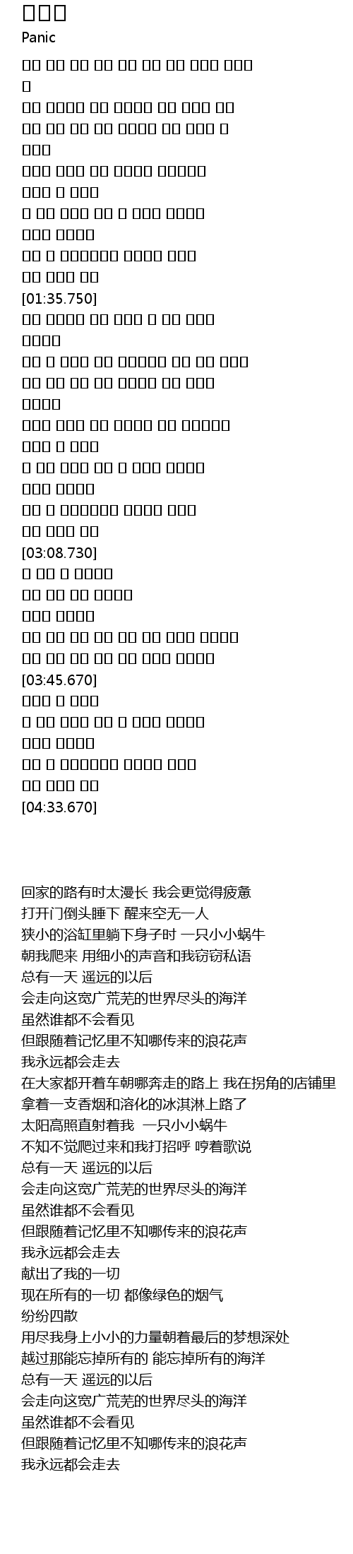| [02:03.920] | 해는 높이 떠서 나를 찌르는데 작은 달팽이 한마리가 |