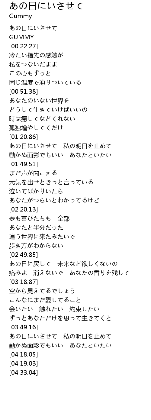 あの日にいさせて 私の明日を止めて |